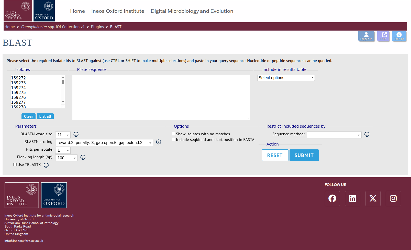 Here, we implement BLAST to allow users to search their sequences against curated collections of genomic data hosted on our platform.