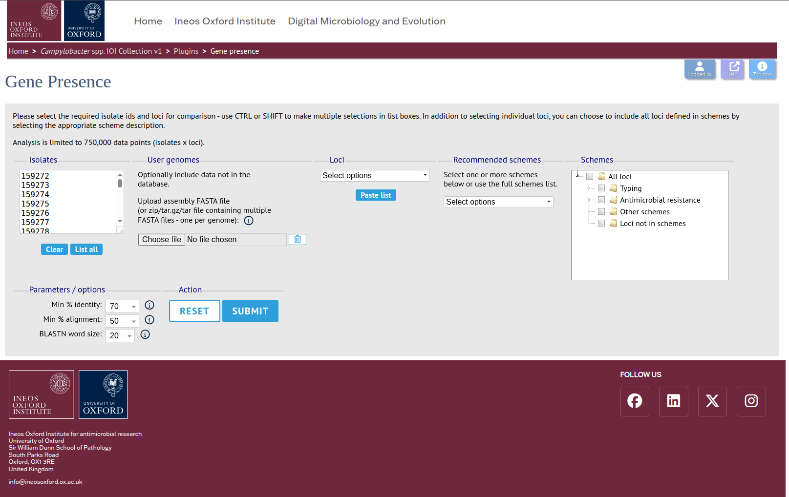 STEP 4 Once you see the Gene Presence interface, select the isolates/loci set, choose detection options, and run the analysis.